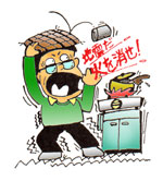 ◆ 素早く火の消火。 ※ 大きな揺れの場合は無理をせず、自分の身を守ること を最優先に。 ◆ 台所でガスコンロを使用しているときは、素早く消火 してください。 ◆ 火災が発生したら火が小さいうちに消火器や水バケツ で消火して下さい。 ◆ 炎が天井付近に達してしまうと消火器では消火するこ とが出来ませんので、速やかに屋外へ避難して下さい。 |