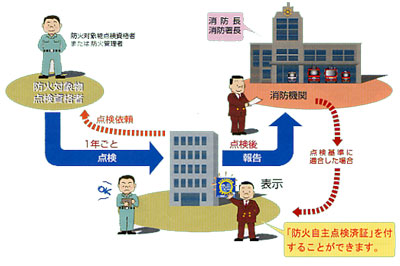 消防法の改正により、防火対象物定期点検報告制度(消防法令に適合している一定規模以上の特定防火対象物に「防火優良認定証」又は「防火基準点検済証」