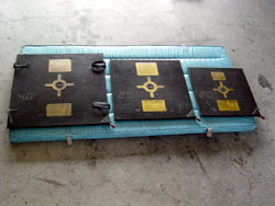 マット型空気ジャッキ 交通事故で、車の下に挟まれた人を、マットで車を持ち上げて救出する。 このマットは、電車を持ち上げることができます。 |