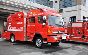 全国の消防で最も多く使われている消防車です。 水を吸い上げて勢いよく吹き出すための、真空ポンプタービンポンプを積んでいます。 |